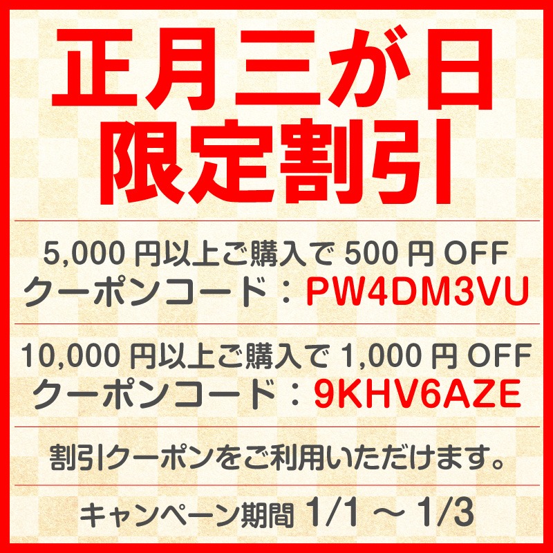 ・クーポン内容:5,000円以上購入で500円割引、10,000円以上購入で1,000円割引(送料をのぞく注文金額に適用)
